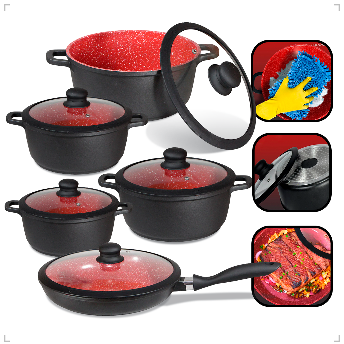 - Inclui uma variedade de tamanhos de panelas e frigideiras para atender a todas as necessidades culinárias.